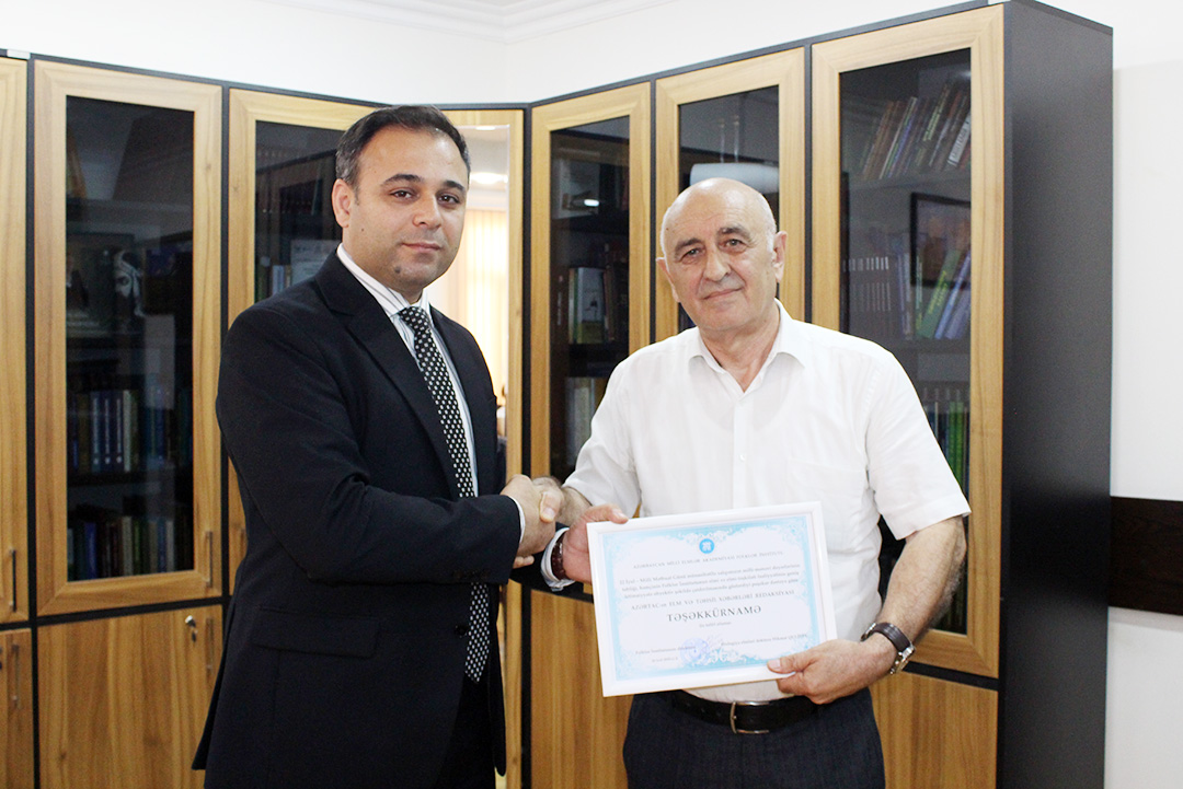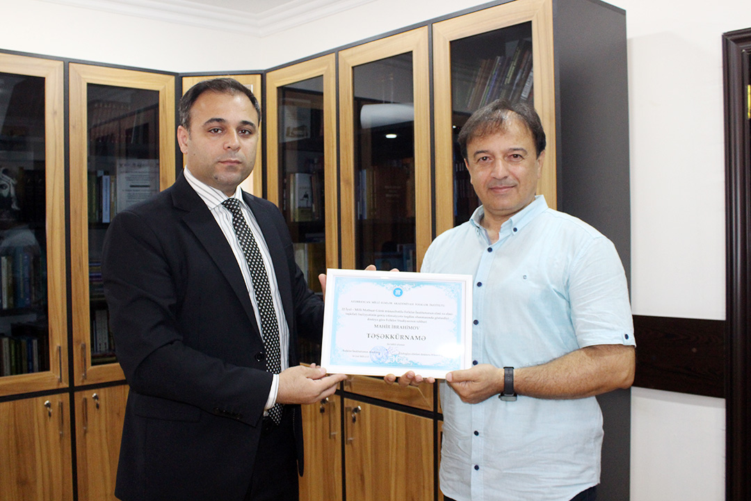 Sonda 22 İyul – Milli Mətbuat Günü münasibətilə xalqımızın milli-mənəvi dəyərlərinin təbliği, həmçinin Folklor İnstitutunun elmi və elmi-təşkilati fəaliyyətinin geniş ictimaiyyətə obyektiv şəkildə çatdırılmasında göstərdiyi peşəkar dəstəyə görə AZƏRTAC-ın Elm və təhsil xəbərləri redaksiyası, eləcə də Folklor İnstitutunun elmi və elmi-təşkilati fəaliyyətinin geniş ictimaiyyətə təqdim olunmasında göstərdiyi dəstəyə görə Folklor studiyasının rəhbəri Mahir İbrahimov təşəkkürnamə ilə təltif olunublar.