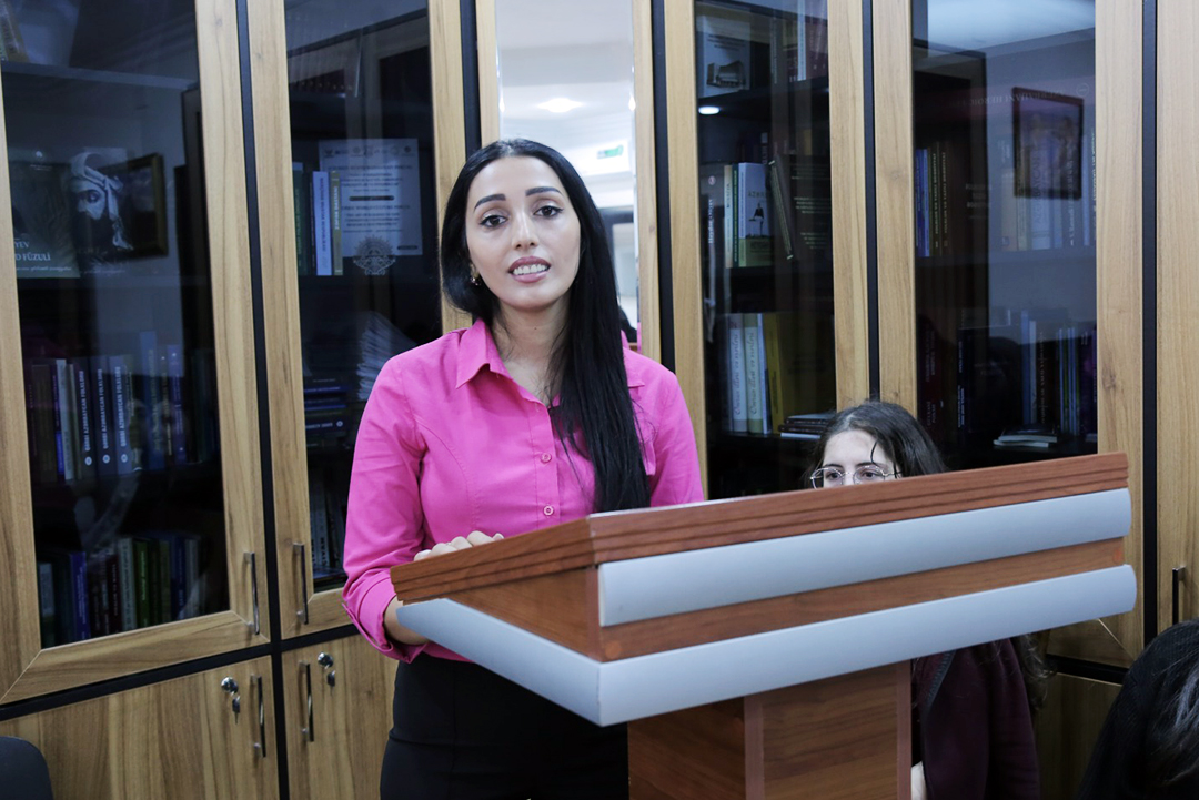 Elmi sessiya Folklor İnstitutunda təcrübə keçən Xəzər Universitetinin IV kurs tələbələri – Nəzrin Şahsuvarlı və Fidan Bağırlının şairin yaradıcılığı barədə düşüncələri və səsləndirdikləri poeziya nümunələri ilə davam edib.