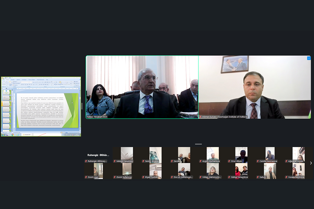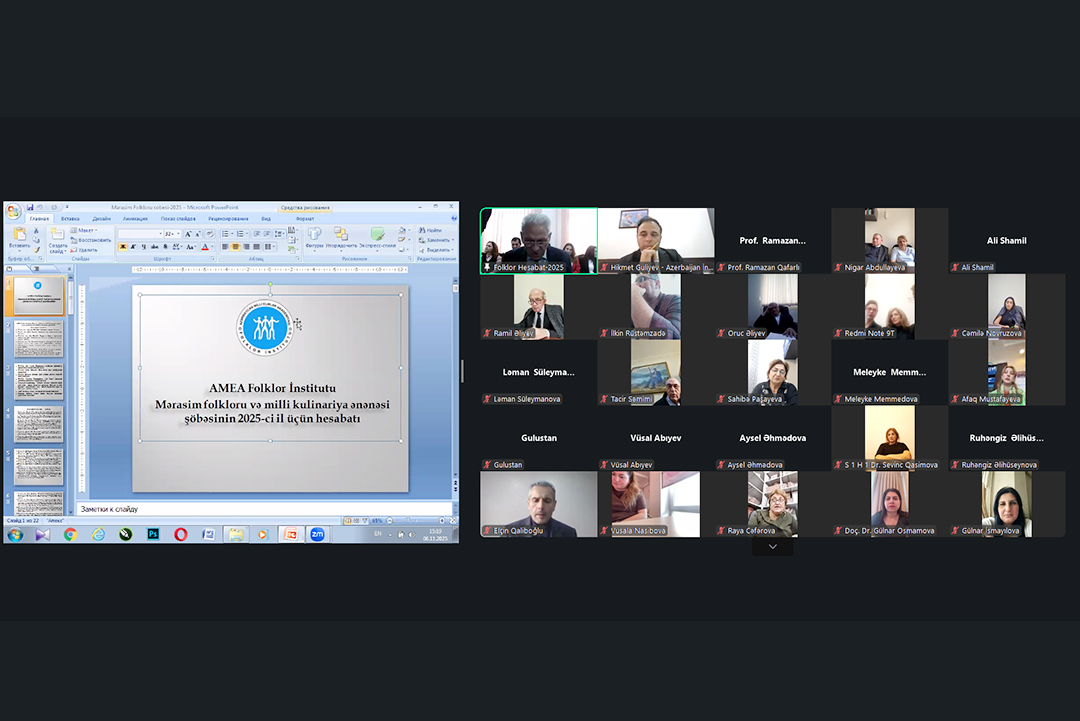AMEA Folklor İnstitutunun Elmi şurasının genişləndirilmiş iclasında folklorşünaslığın elmi-nəzəri və təcrübi məsələləri istiqamətində fəaliyyət göstərən şöbələrin 2025-ci il üzrə illik hesabatları müzakirə olunub. Hibrid formatda keçirilən iclasda, Elmi şura üzvləri ilə yanaşı, institutun kollektivi də hesabatların müzakirəsində fəal iştirak edib, şöbələrin elmi və elmi-təşkilati fəaliyyəti, aparılan tədqiqatlar və dərc olunan işlər, eləcə də beynəlxalq əməkdaşlıq əlaqələrinin nəticələrini təqdim edilib.
