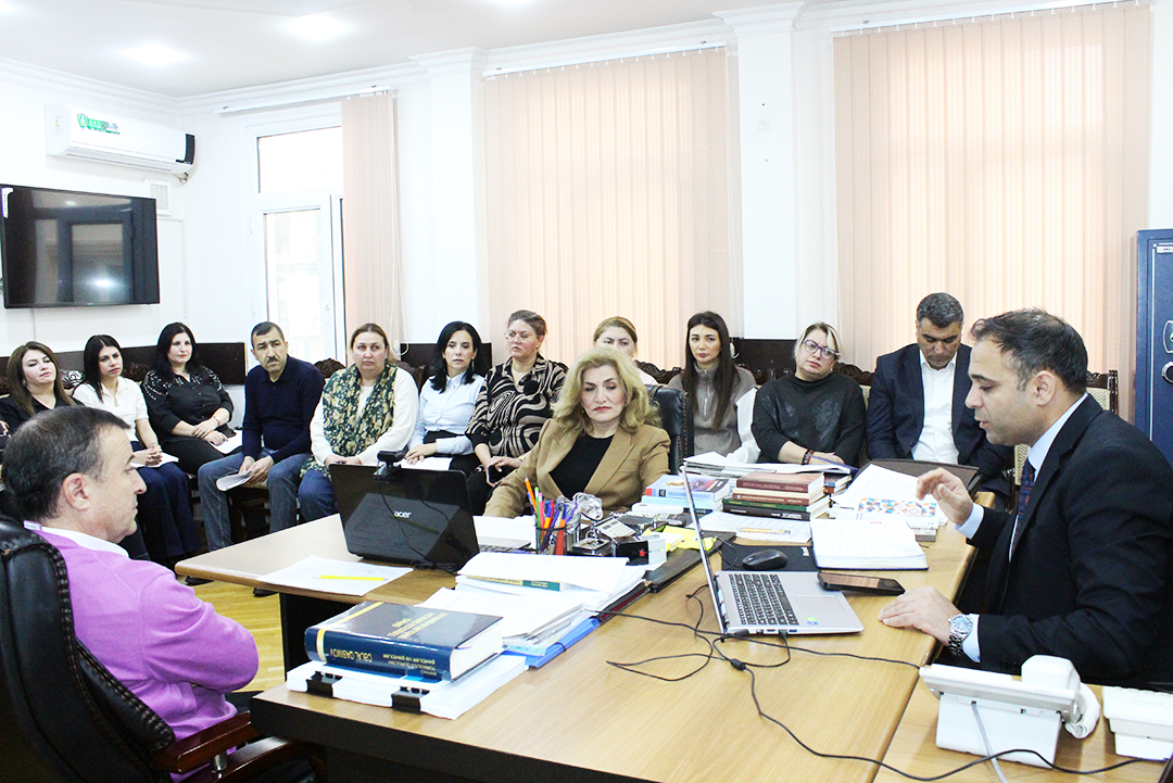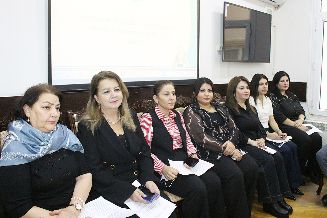 Daha sonra Folklor nəzəriyyəsi şöbəsinin 2025-ci il üzrə elmi və elmi-təşkilati fəaliyyətinə dair hesabatı şöbə müdiri, filologiya elmləri doktoru, professor Füzuli Bayat tərəfindən təqdim olunub. Alim qeyd edib ki, cari ildə AMEA Rəyasət Heyətinin müvafiq qərarına əsasən şöbənin adı və fəaliyyət istiqaməti müəyyən qədər dəyişdirilib, müasir folklor tədqiqatları ilə yanaşı, nəzəri aspektlərin genişləndirilməsinə diqqət artırılıb. O bildirib ki, şöbənin fəaliyyəti il ərzində plana uyğun şəkildə həyata keçirilib, nəzəri araşdırmaların genişləndirilməsi və elmi nəticələrin sistemləşdirilməsi istiqamətində mühüm işlər görülüb. Alim qeyd edib ki, cari ildə onun rəhbərliyi ilə həyata keçirilən “Peşə folkloru və peşə lətifələri: tematikası və funksiyası” adlı tədqiqatın ilk mərhələsi – “Şəhər mühiti və peşə folkloru: funksional-semantik özəllikləri” üzrə nəzərdə tutulan iş tam hazırlanaraq yekunlaşdırılıb.
